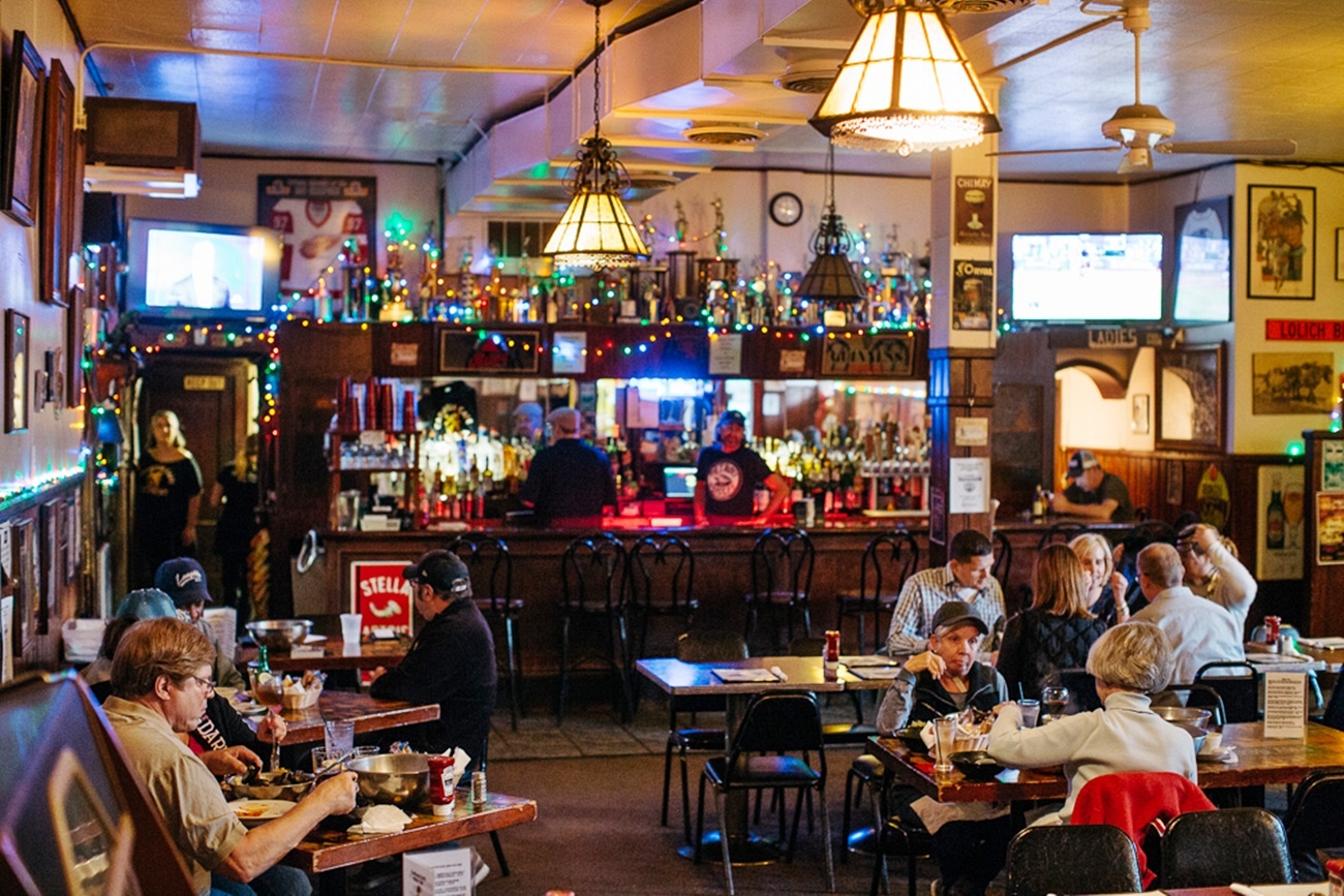 The Elwood Bar & Grill is another Art Deco masterpiece. It was built in the 1930s as a diner, and carries those classic Americana vibes forward into today. Thanks to its location next to Comerica Park and Ford Field, this is probably the most unique bar in Detroit for sports lovers – whether you visit during a game, after a game, or on a non-game day.