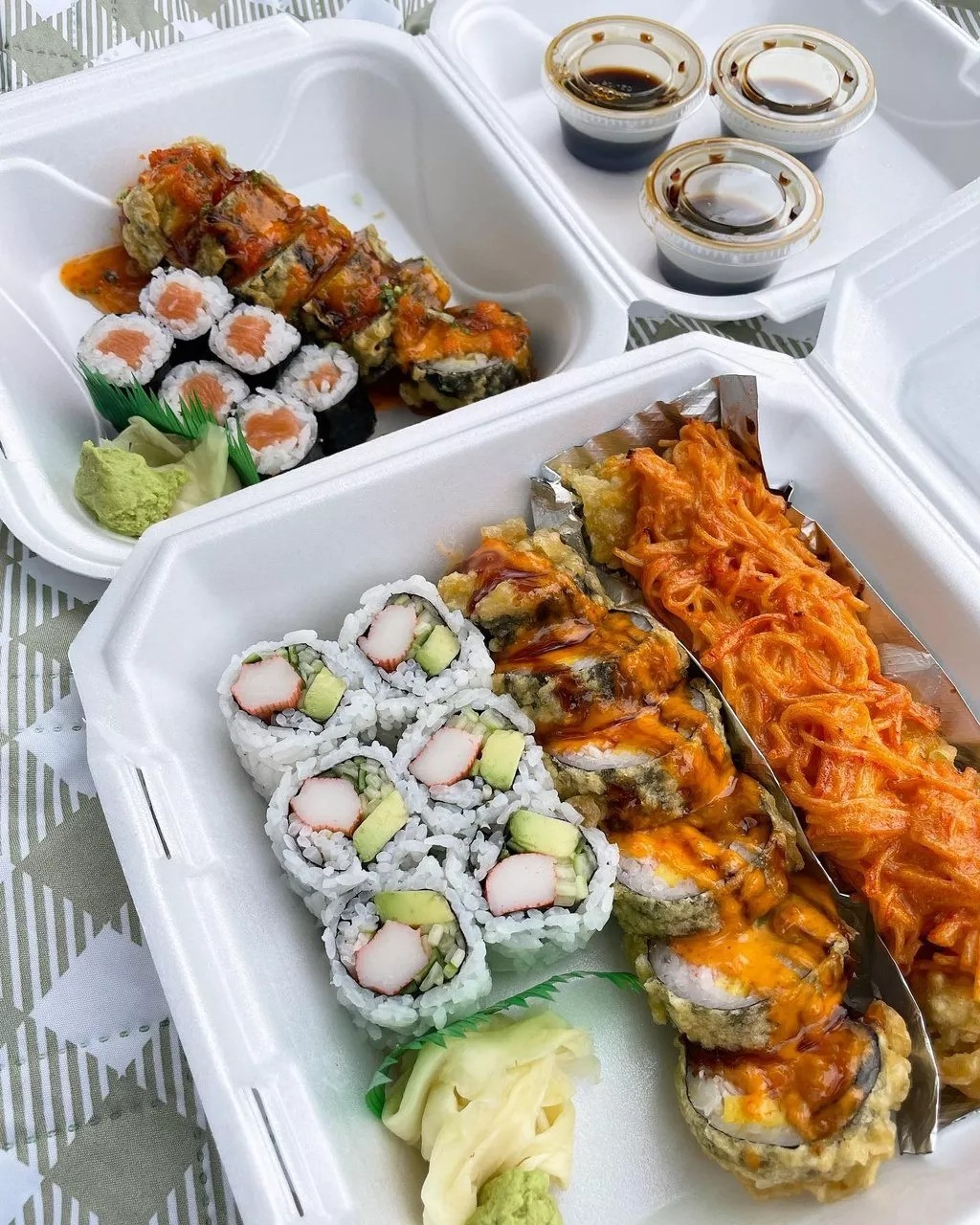 If you’re looking for wonderful sushi at home, look no further than Ajishin! Located in Novi, Ajishin offers generous sushi cuts at affordable prices. Ajishin offers nigiri, chirashi bowls, udon, cold soba, and a selection of sushi rolls starting at five dollars each.
